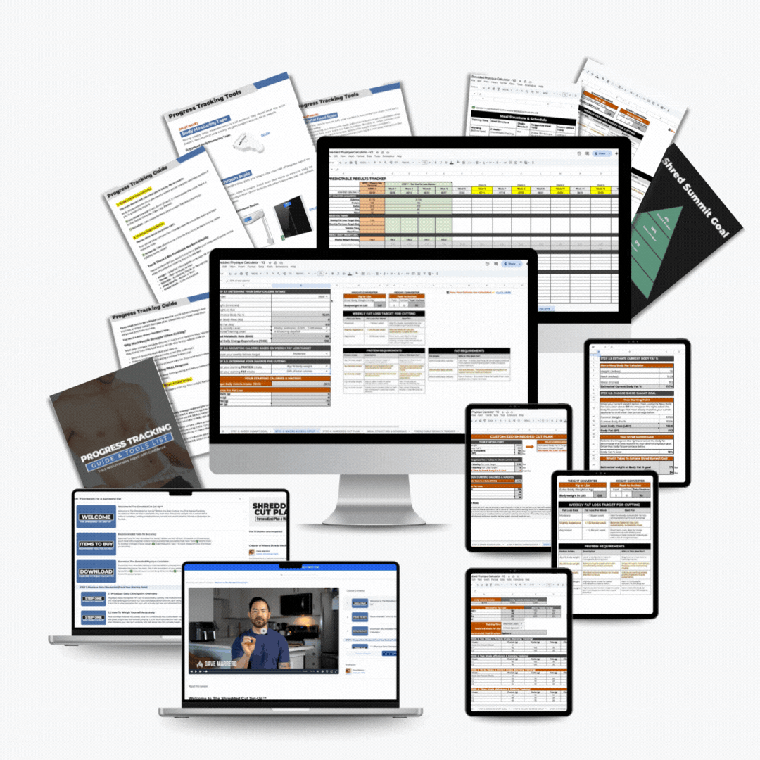 You’ll get a series of short videos plus the exact calculators, spreadsheets, guides, and one-page personalized cutting plan you need to build your custom nutrition strategy for cutting in 30 minutes.